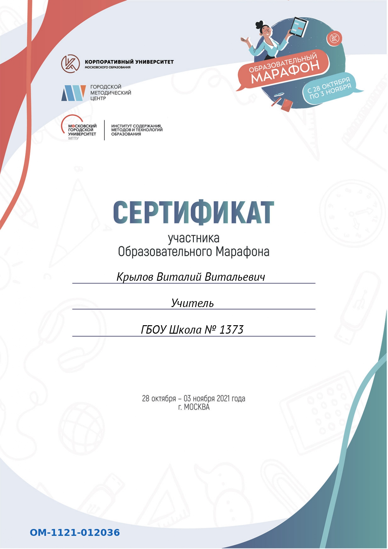 8) Сертификат участника образовательного марафона, Корпоративный университет, г. Москва, 2021 г. (доступно по ссылке)